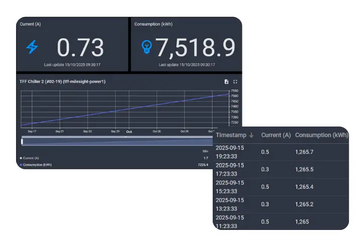 Monitor energy consumption across your facility in real time, with live data feeds from individual devices, equipment, or entire systems. This feature enables immediate visibility into where and how energy is being used, helping you detect inefficiencies, abnormal spikes, or operational anomalies as they happen—before they become costly problems.